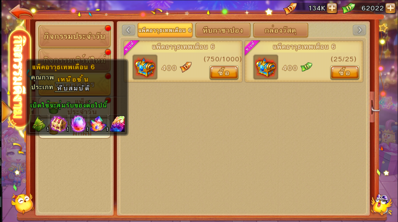 แพ็คเกจใหม่ แพ็คอาวุธเทพเดือน 6 เปิดแล้วจะเทพมาก ลุ้นรับกล่องอาวุธม่วงเลือกเอง