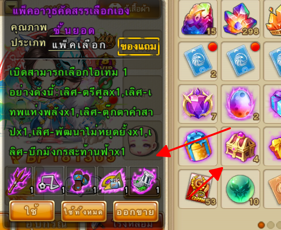 เมื่อเปิดแล้วจะสุ่มของรางวัลดังนี้