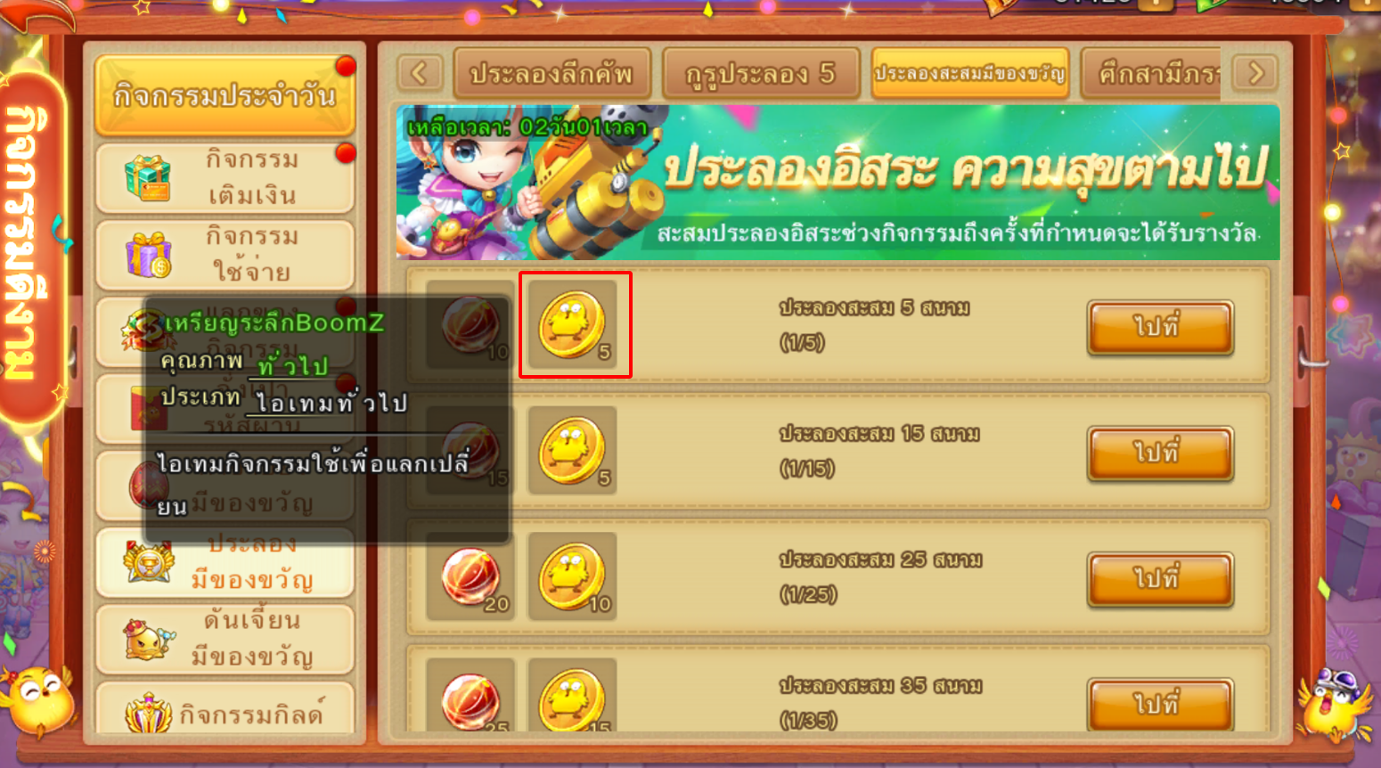 และ เหรียญระลึกBoomZ ซึ่งกิจกรรมนี่ ของรางวัลที่เป็นจุดเด่นคือ เหรียญระลึกBoomZ