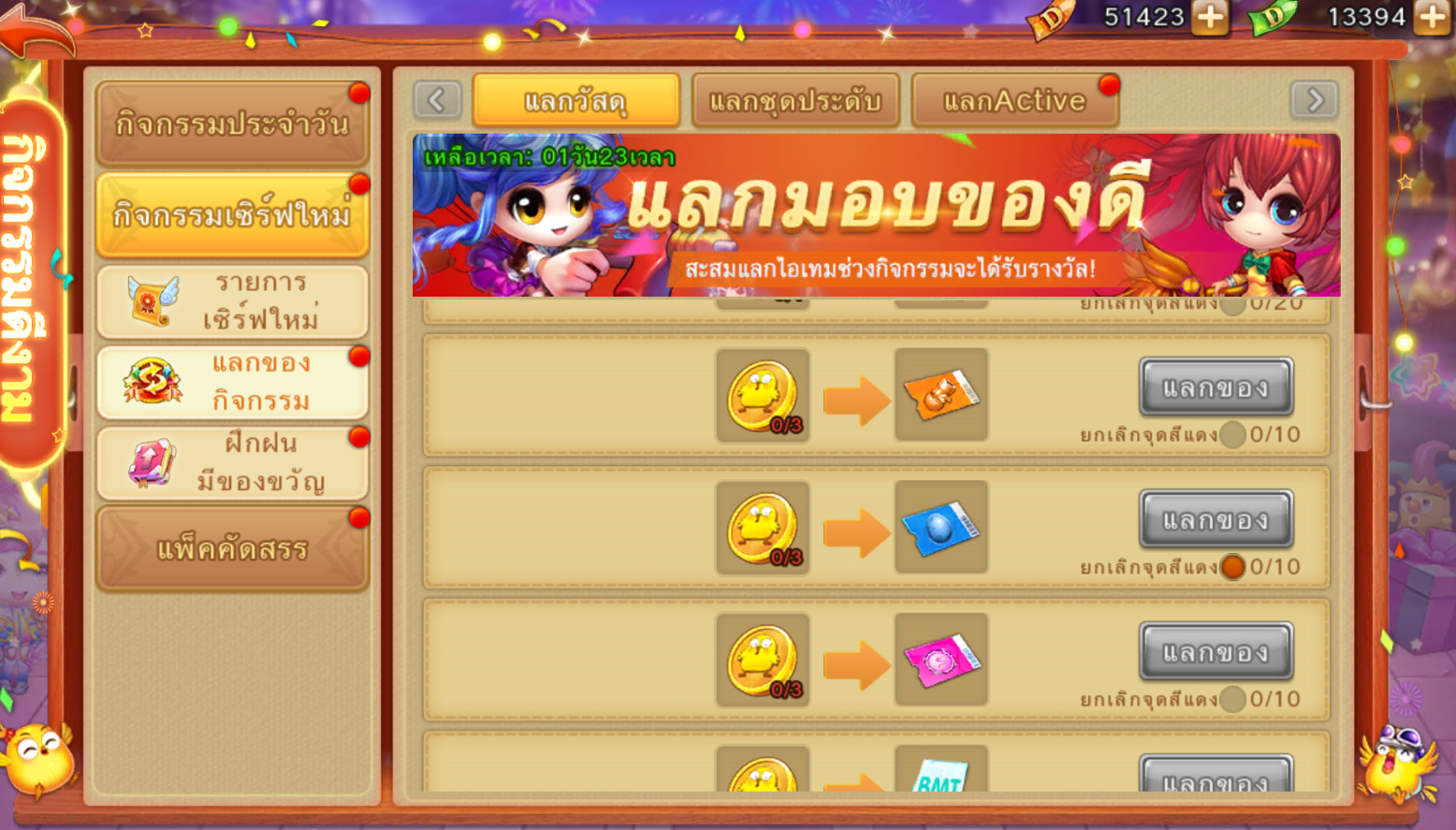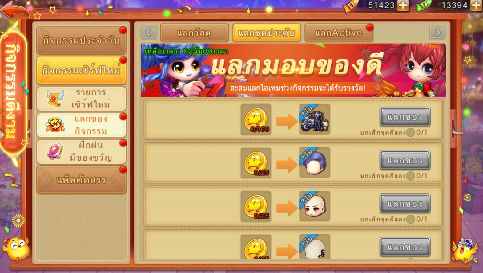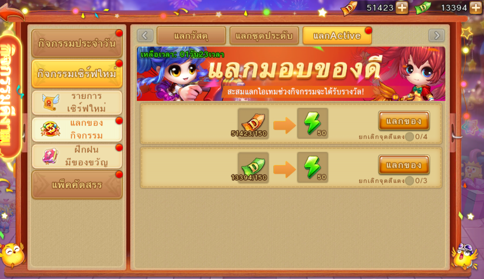 กิจกรรมจะเปิดเมื่ออายุเซิร์ฟเวอร์เซิร์ฟเวอร์ครบ 3 วัน ระมีระยะเวลาเพียง 1 วันเท่านั้น