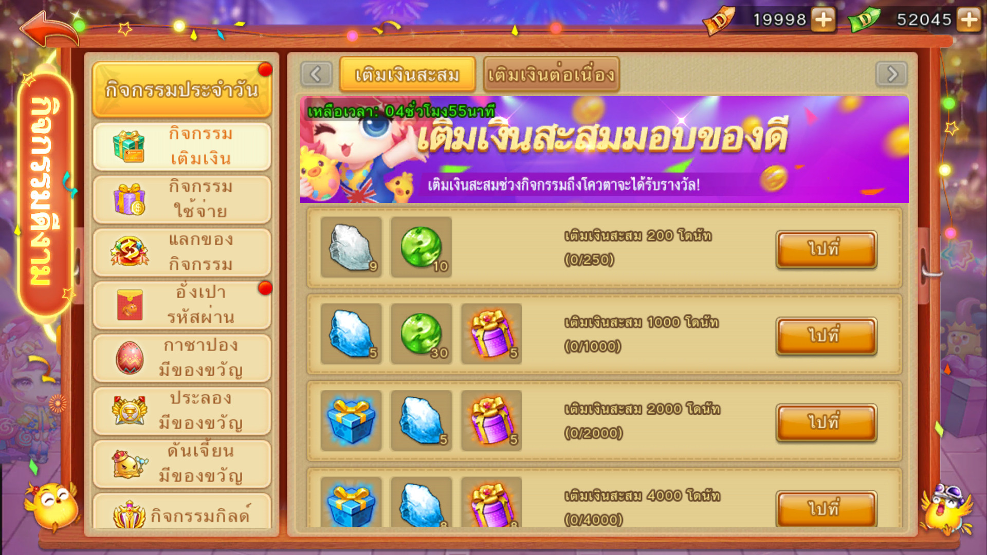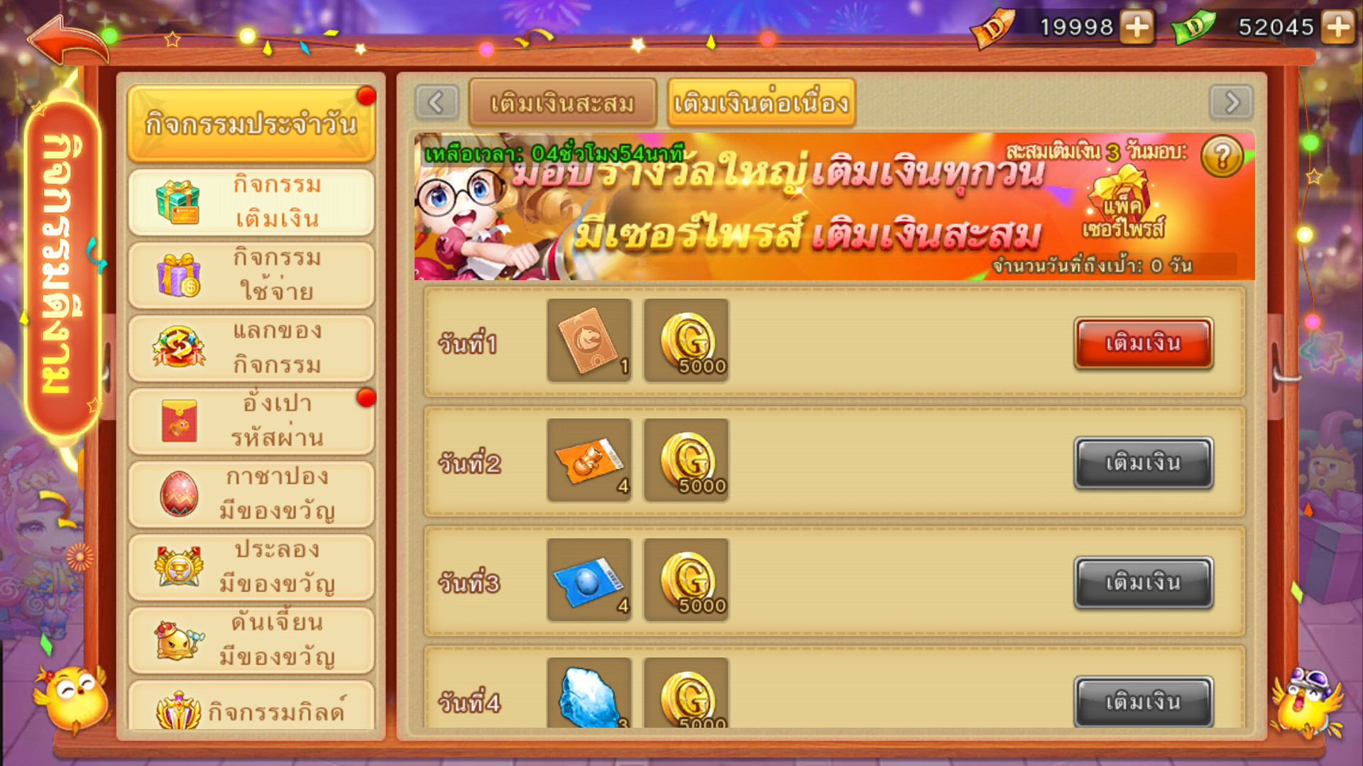 ในช่วงเวลากิจกรรม สามารถทำภารกิจเติมเงินเท่าไหร่ก็ได้ สะสมการเติมเงินให้ถึงที่กำหนดรับรางวัล มากมาย