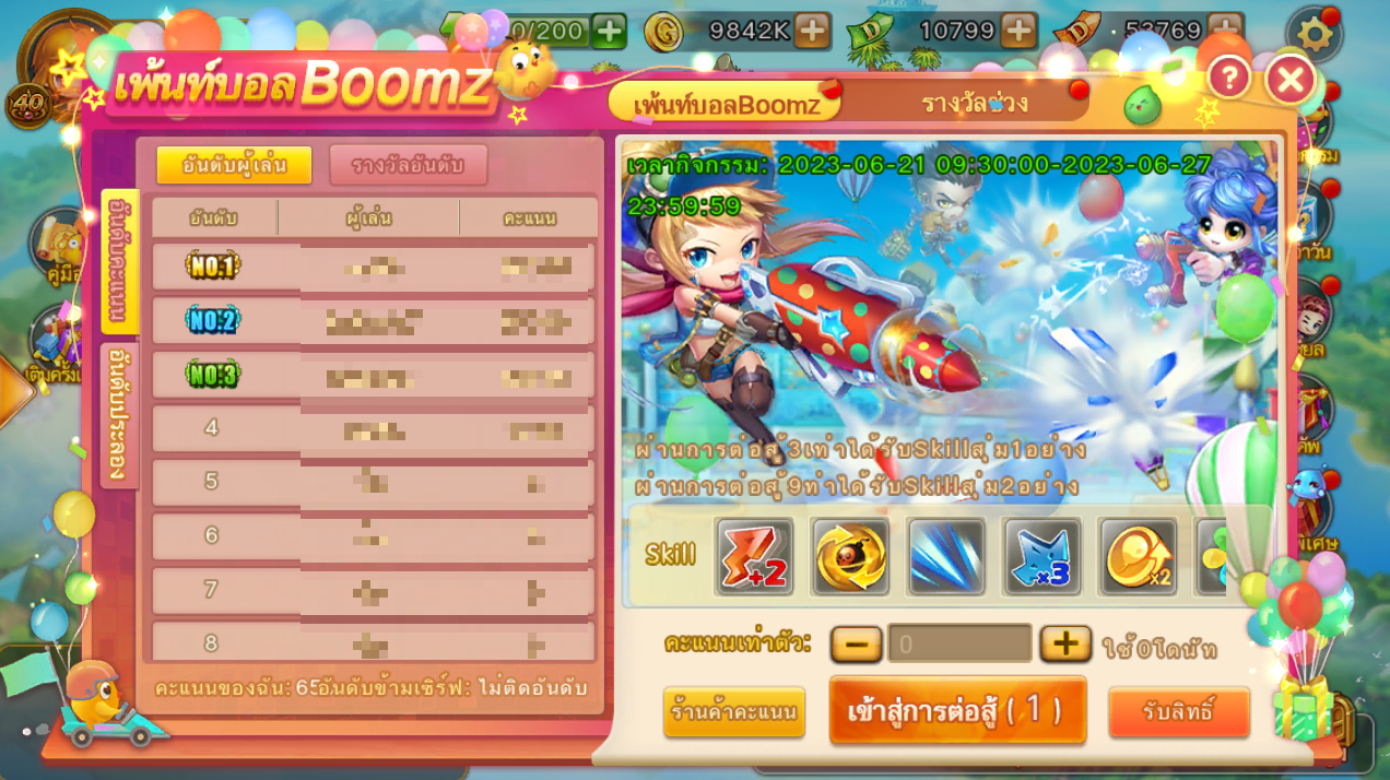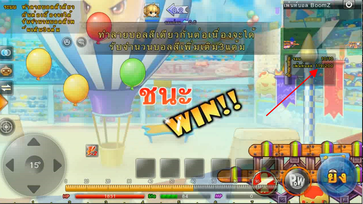 - ถ้าในรอบนั้นทำลายลูกโป่งทั้งหมดได้จะได้รับคะแนนเพิ่มเติม 30 แต้ม