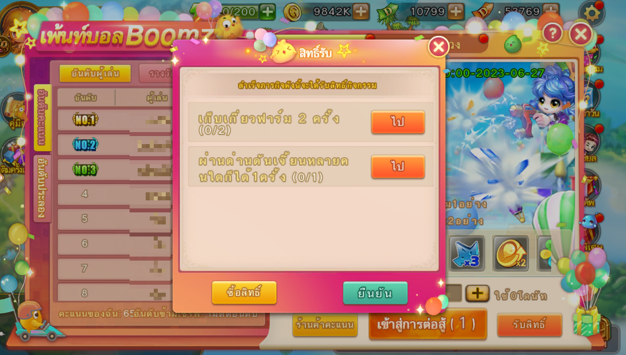 1.ใช้สิทธิ์เข้าสู่กิจกรรม แจก 1 ครั้ง ทุกวัน สำเสร็จภารกิจพิเศษในแต่ละวันรับ 2 ครั้ง และซื้อได้ 1 ครั้ง