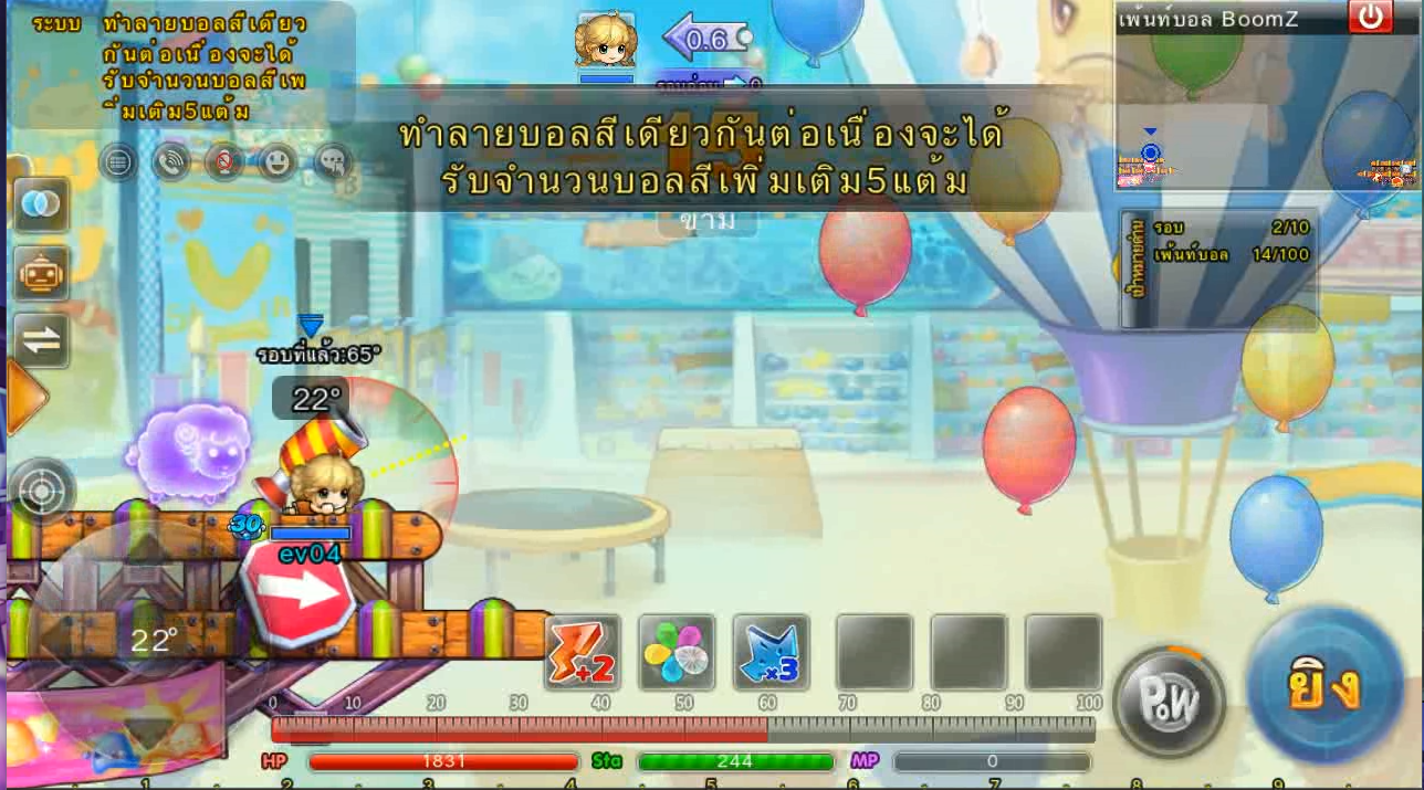 - [ 2 ] ถ้ามีลูกโป่งพิเศษ ให้เล็งลูกโป่งพิเศษก่อน ปรับองศาไปยิง หลังจากนั้นทำตามข้อ [ 1 ]