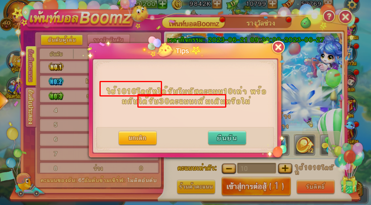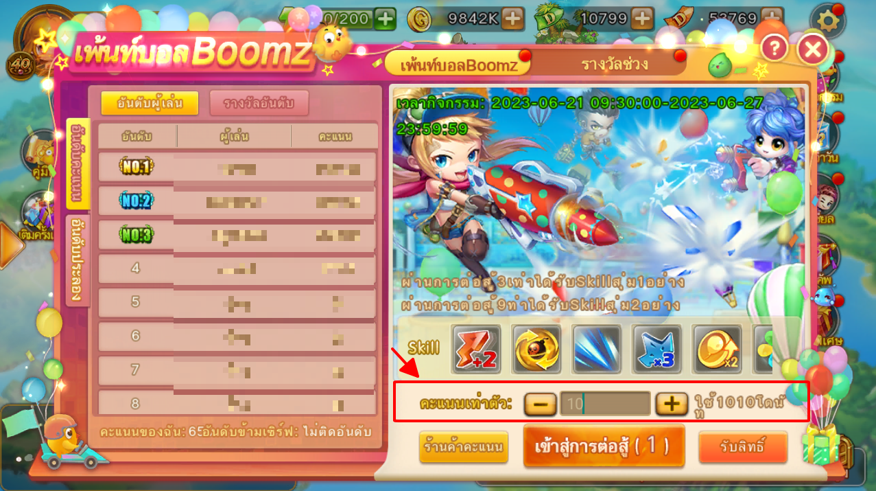 จะได้รับ 20 แต้มกิจกรรม คูณ กับ จำนวนเท่าก่อนเริ่มเกม (ในภาพ *10)+1