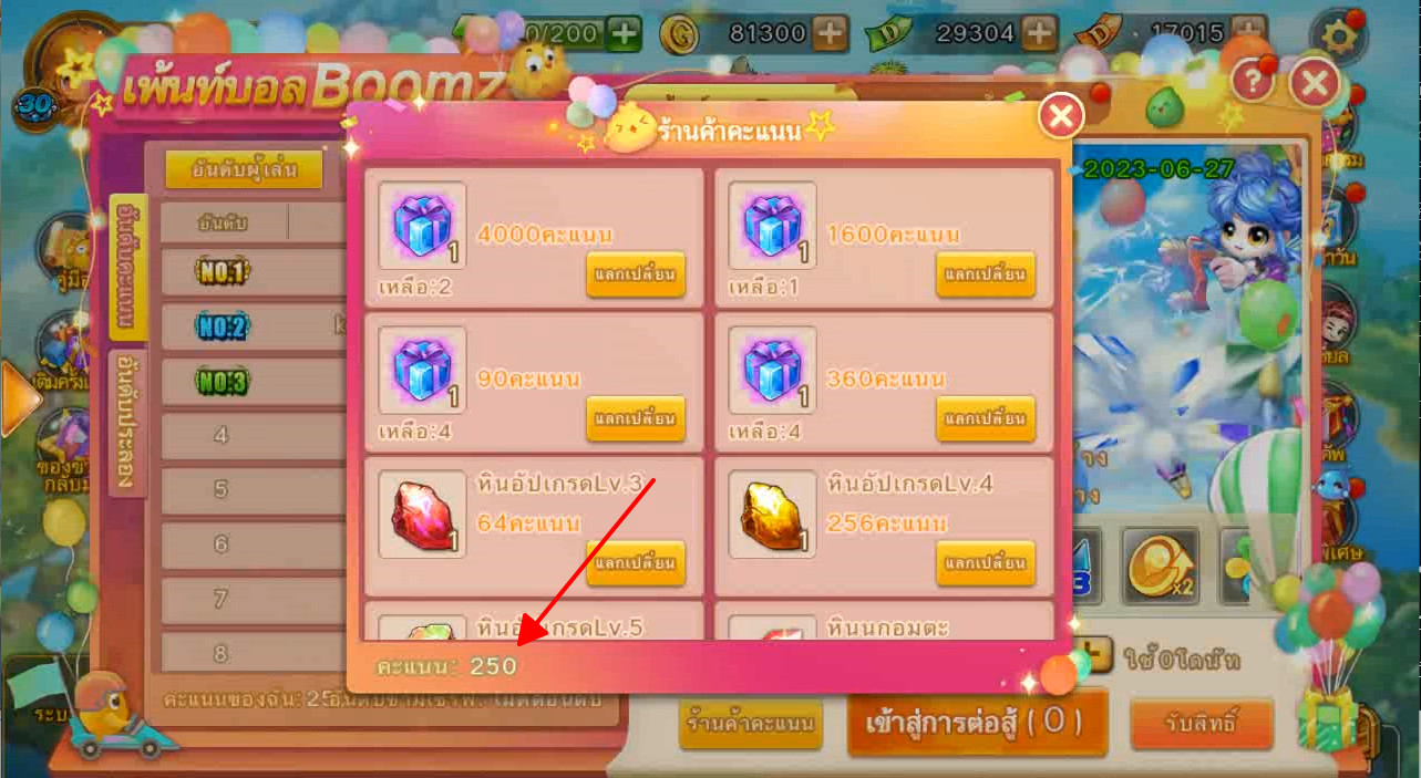 3. คะแนน ในการยิงลูกโป่ง น้อยกว่า 100 จะได้รับ 15 คะแนนกิจกรรม และ แพ็คปลอบใจ