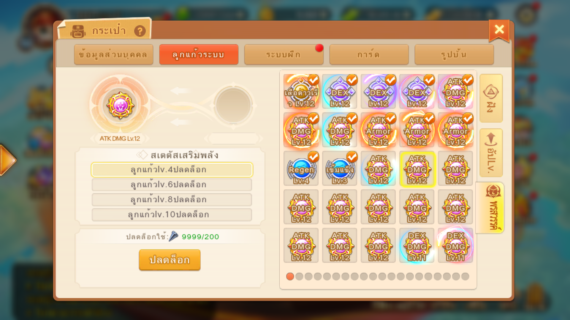 1.ลูกแก้วถึง Lv.4/6/8/10 สามารถใช้สว่านเจาะรูปลดล็อกสเตตัสเสริมพลังได้
