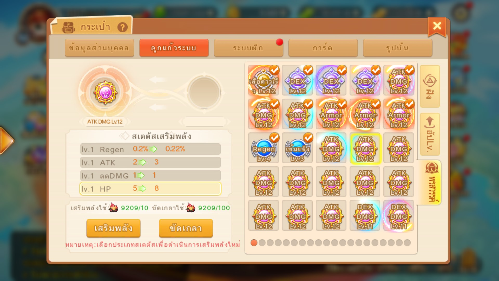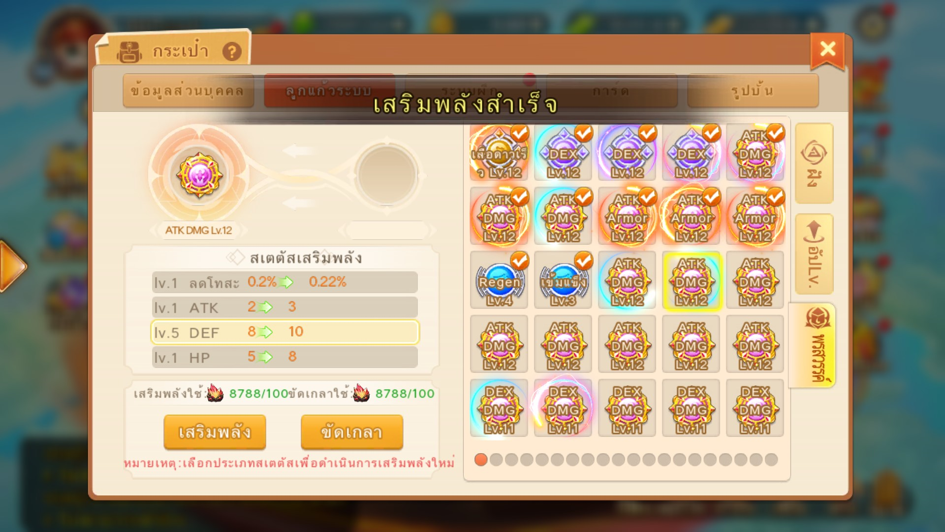 สเตตัสสกิลปรากฏแค่ลูกแก้ว ประเภทATK/DEFเท่านั้น