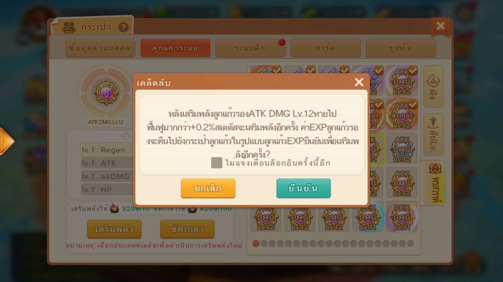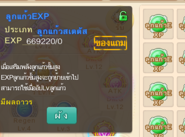 6.เมื่อใช้ลูกแก้วที่มี Lv. มาขัดเกลา EXP ของลูกแก้วนั้นจะคืนไปยังกระเป๋าลูกแก้วโดย จะกลายเป็น ลูกแก้ว EXP