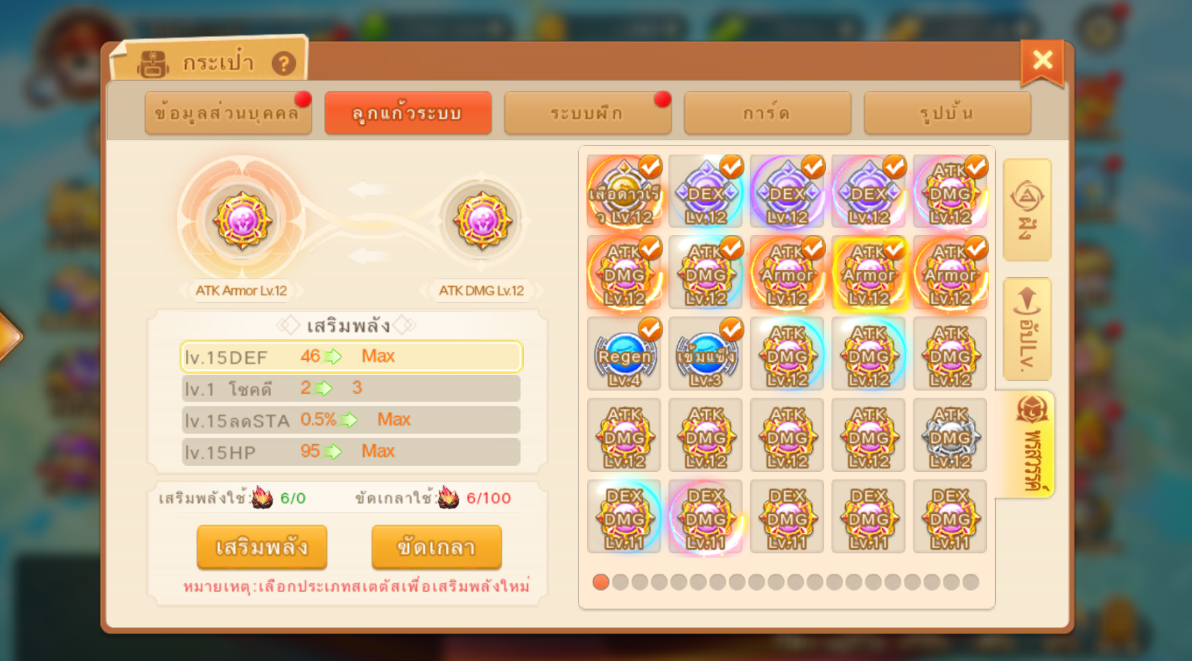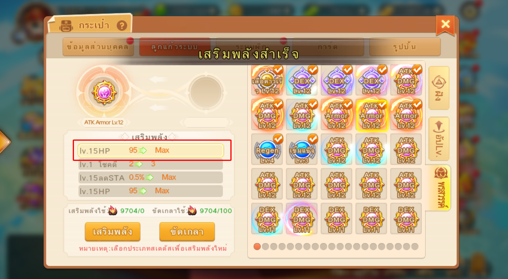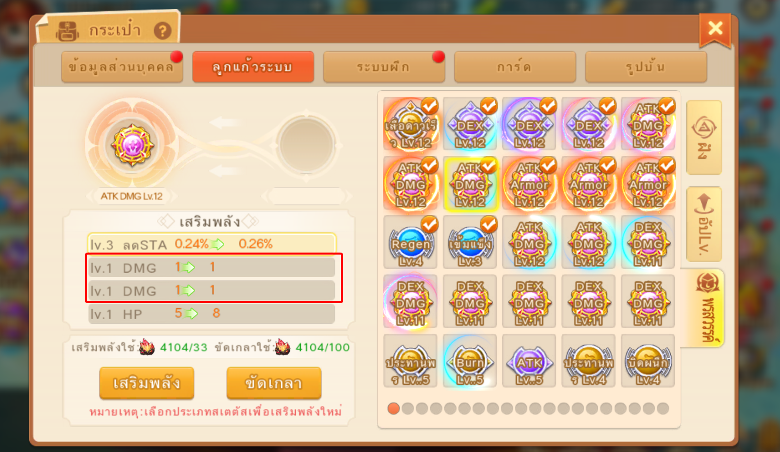 2.ใช้หินเสริมพลังสามารถเพิ่มLv.เสริมพลัง