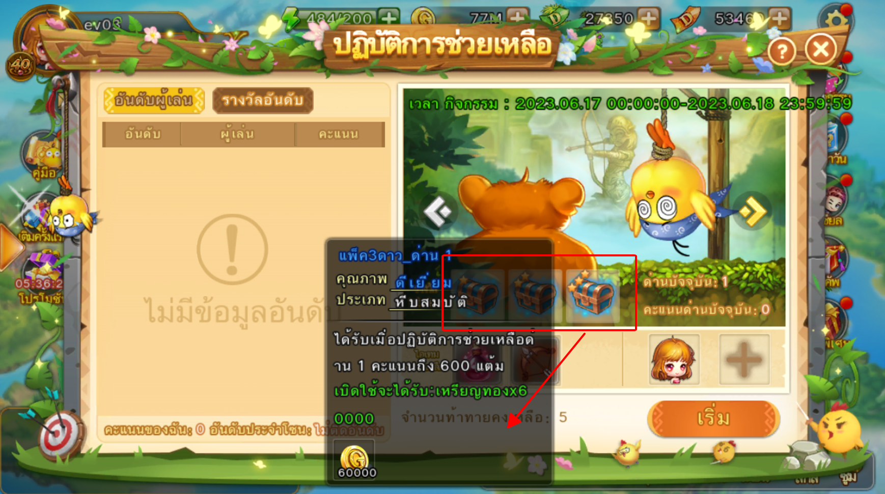 1.ผ่านด่านปฏิบัติการช่วยเหลือครั้งแรกจะได้รับรางวัลดาวผ่านครั้งแรกจะได้รับรางวัลดาวผ่านครั้งแรก (รางวัลผ่านครั้งแรกจะถูกรีเซ็ตทุกสัปดาห์)