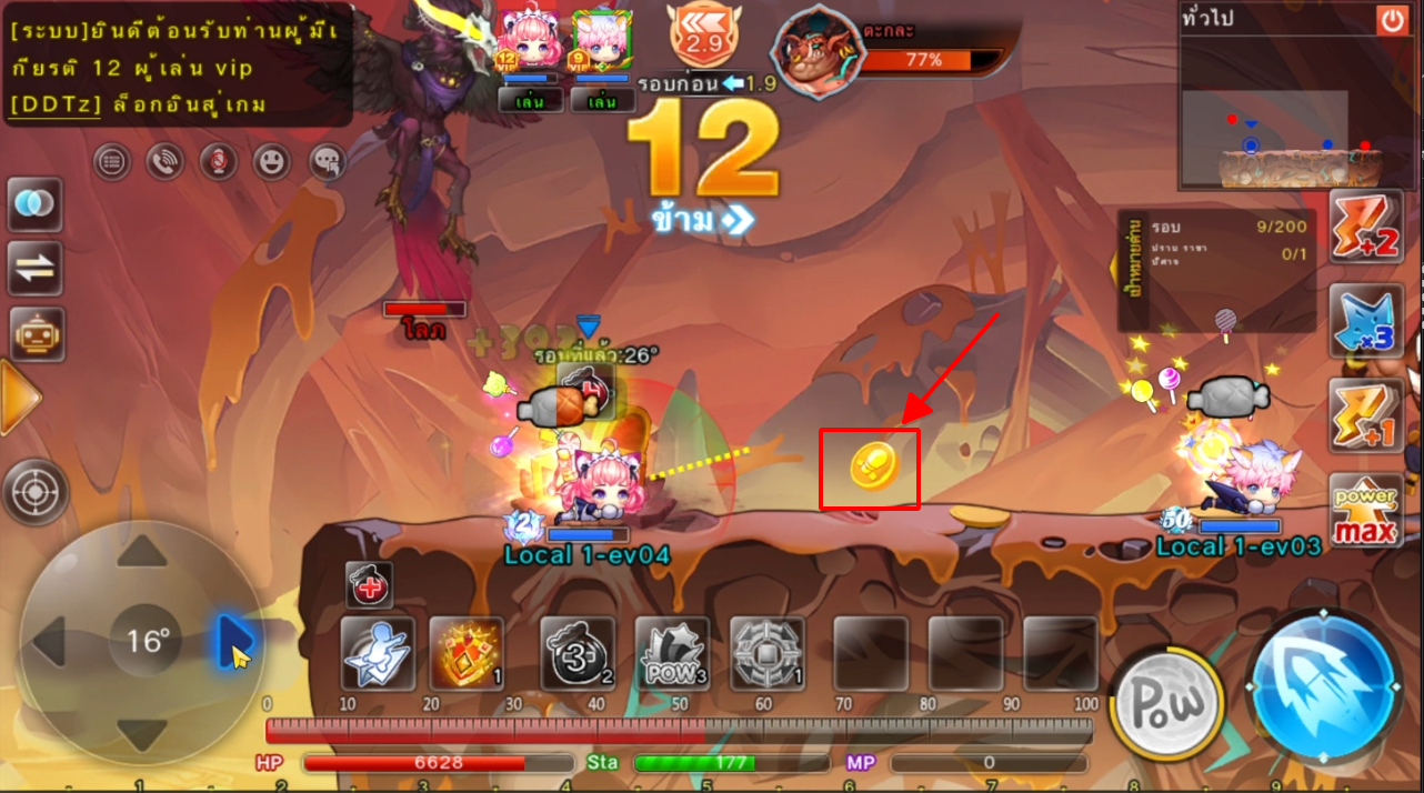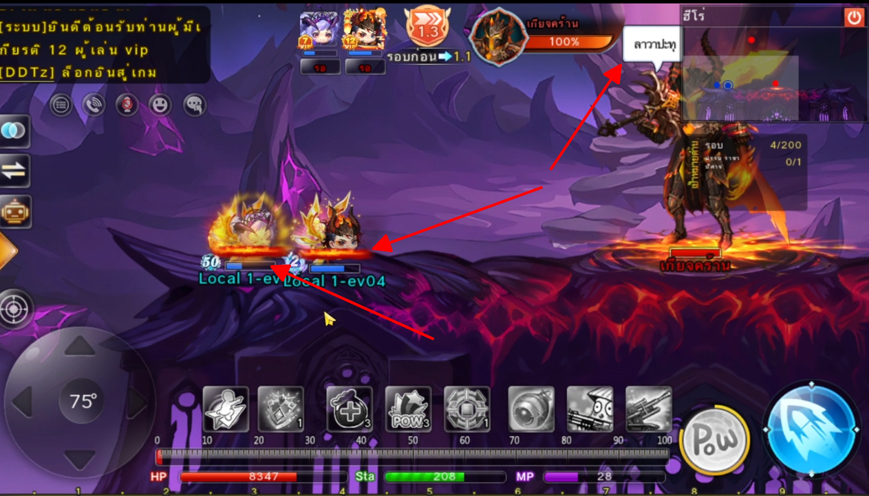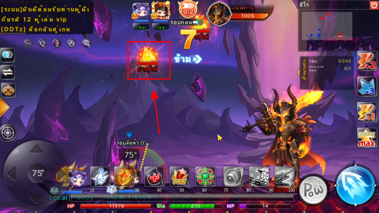 หากบอส ใช้สกิลลาวาปะทุแล้ว ให้สังเกตุที่พื้นที่ตัวละครอยู่ จะมีไฟใต้เท้า ให้ทำการขยับออก ไม่งั้นจะโดนลาวาปะทุใส่ซึ่งแรงมาก