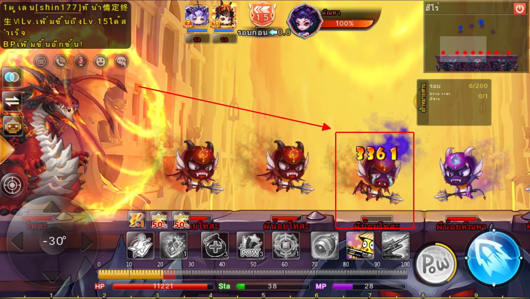 หลังจากยิงธาตุไฟหมดแล้ว ให้กระหน่ำยิงบอสได้เลย เพราะบอสจะอ่อนแอมากๆ
