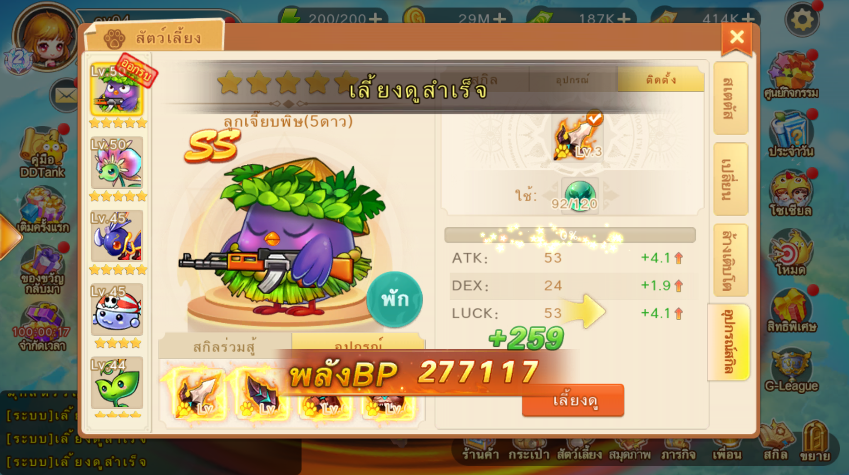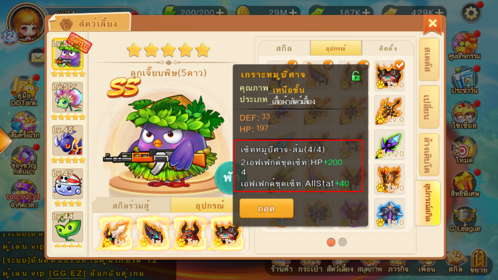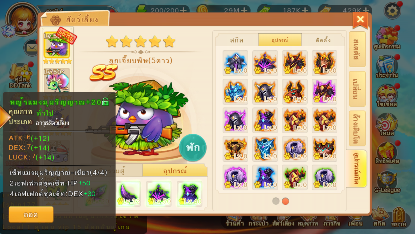 อุปกรณ์สัตว์เลี้ยงสามารถเพิ่ม Lv ได้ ยิ่งเพิ่ม Lv สเตตัสก็จะยิ่งสูงขึ้น