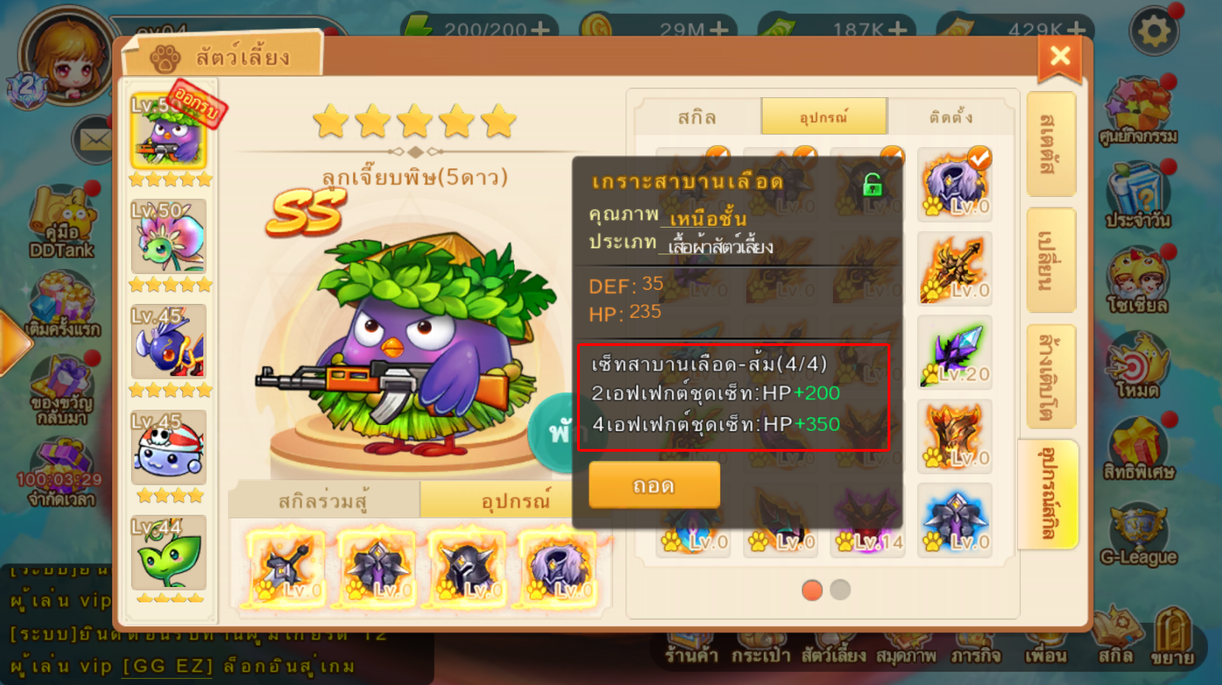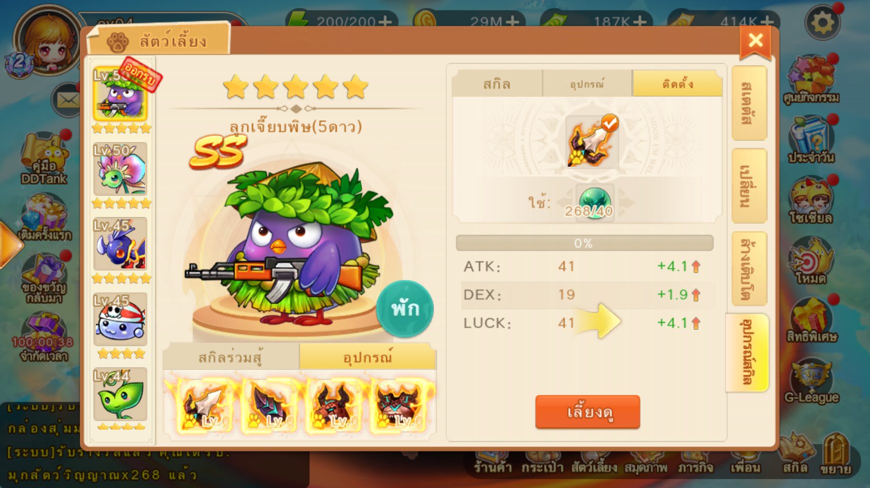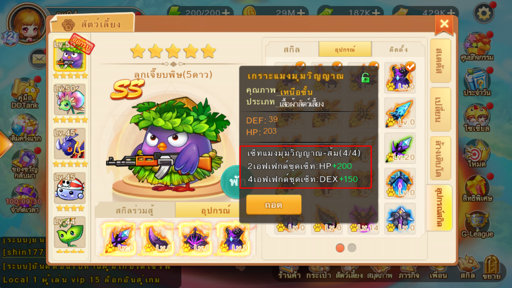 อุปกรณ์สัตว์เลี้ยงสามารถเพิ่ม Lv ได้ ยิ่งเพิ่ม Lv สเตตัสก็จะยิ่งสูงขึ้น