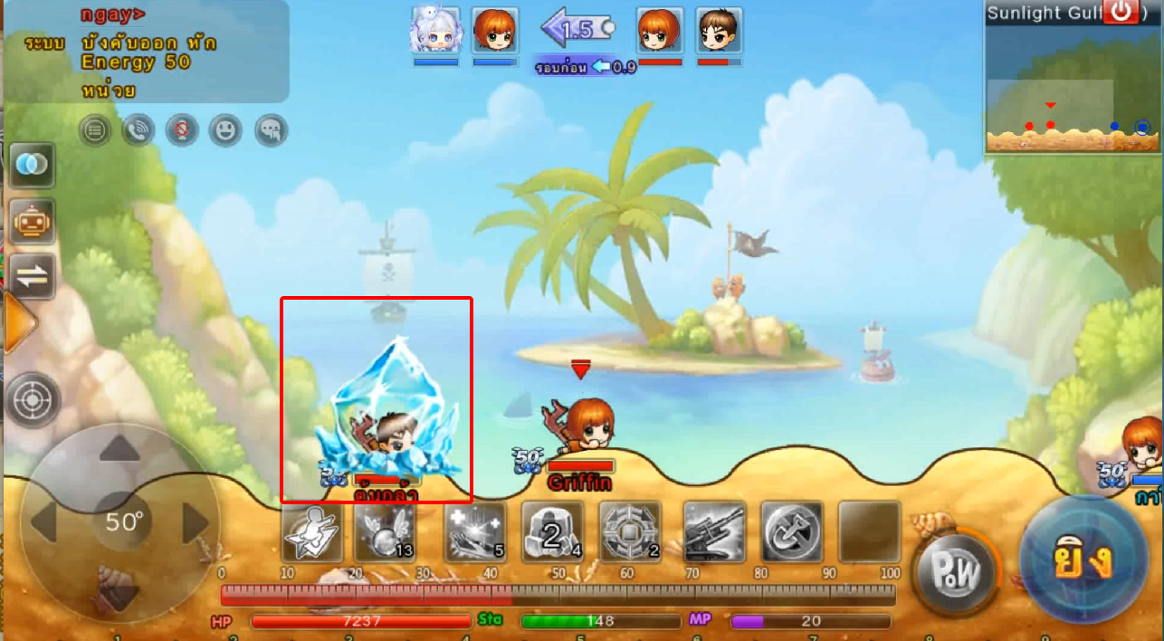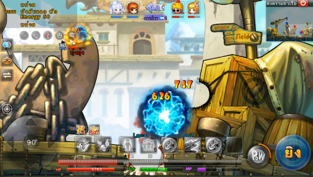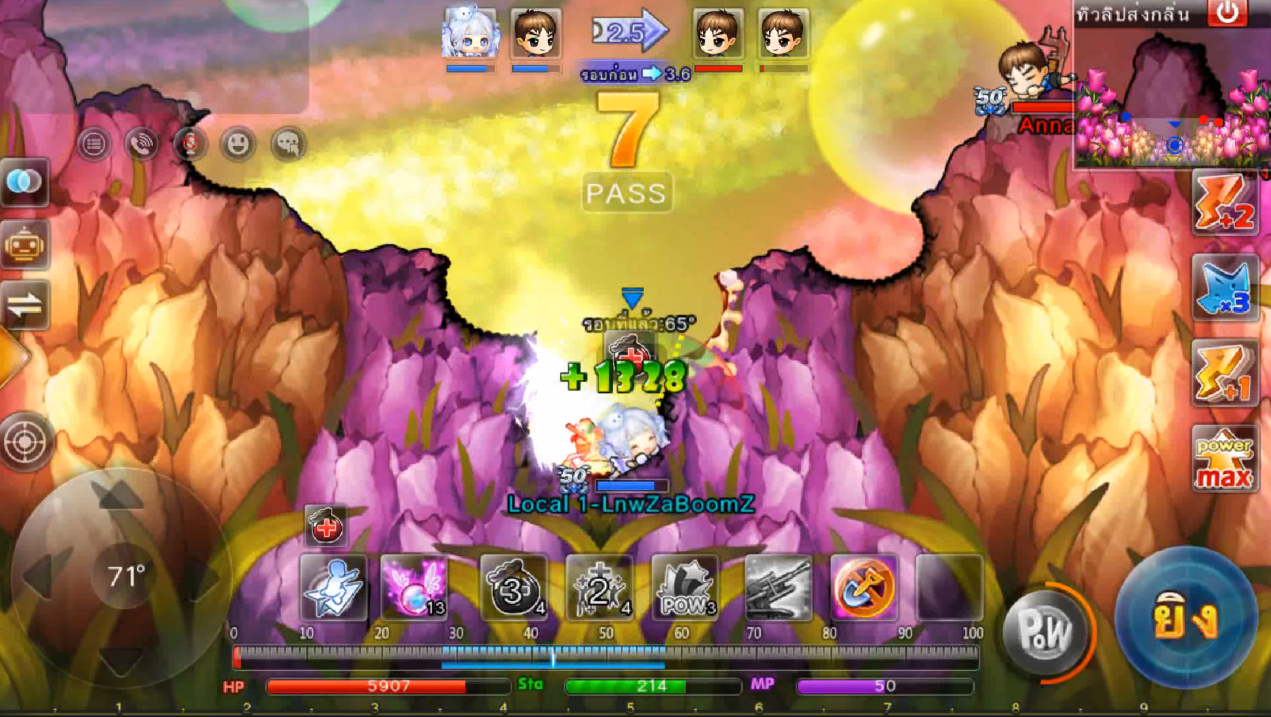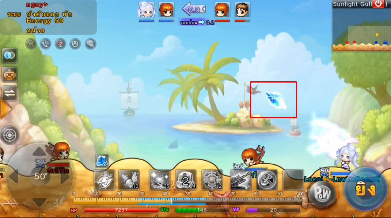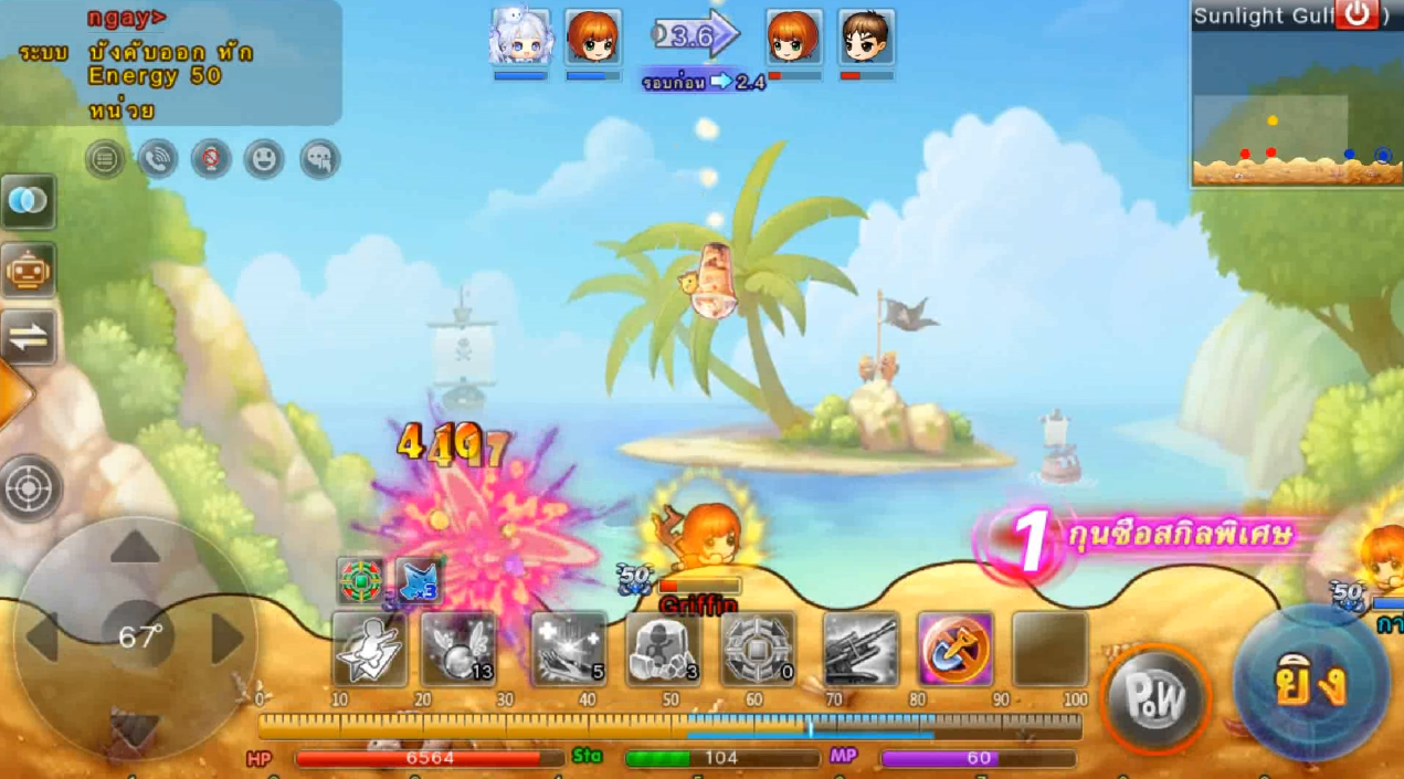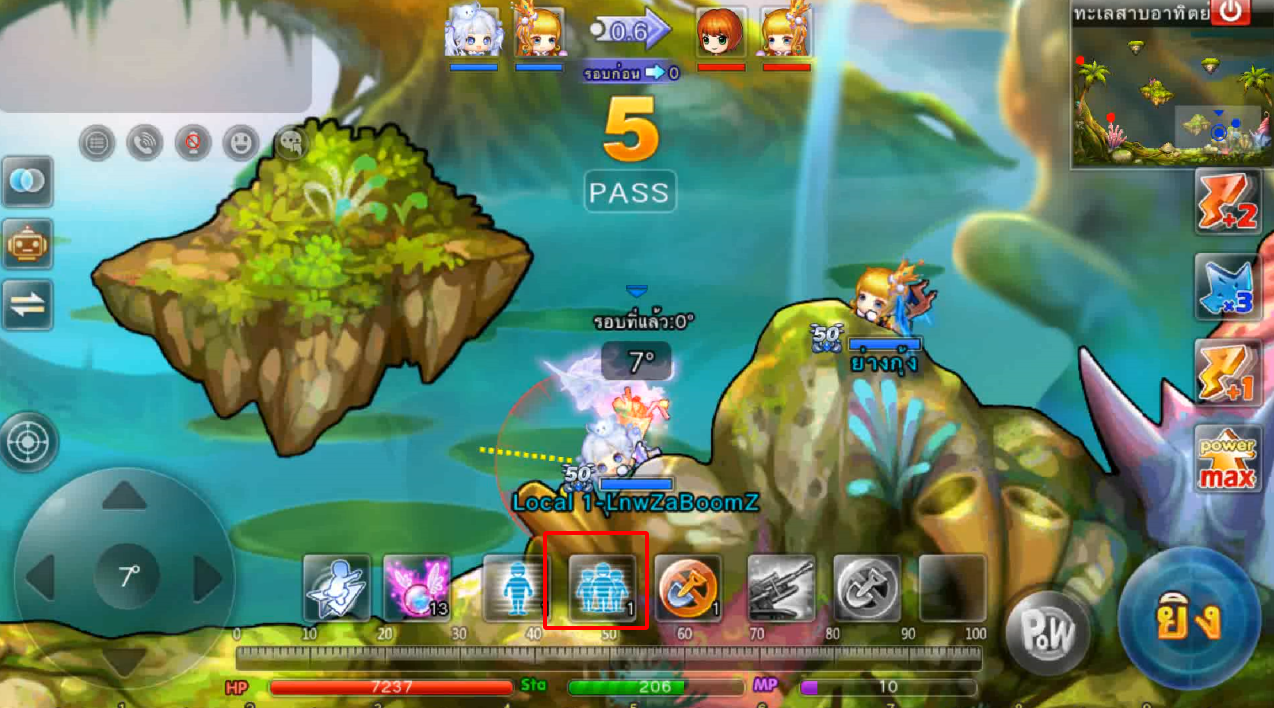 ในภาพใช้สกิลและกดใช้ไอเทม ปา 3 นัด เมื่ออาวุธตกใกล้เป้าหมายจะทำการล็อคเป้าหมายและพุ่งเข้าไปหาเป้าหมายทันที