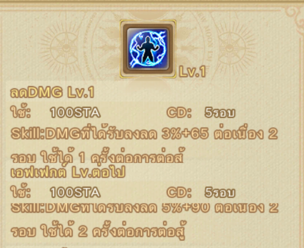 ลดดาเมจ : เมื่อใช้จะได้รับดาเมจลดลง