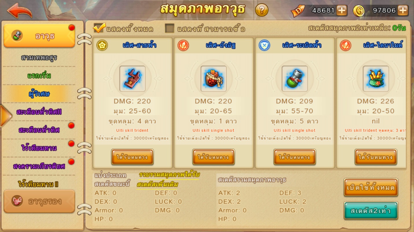 หรือ จะมาอาวุธยอดฮิตต้นเกมอย่าง “ดาวกระจาย” มีความว่องไวมาก ใช้ที่ไรเกือบจะได้ยิงก่อนเสมอ ในบางครั้ง ดาวกระจาย ยังสามารถแย่งรอบการยิงของอีกฝ่ายได้อย่างไม่ทันตั้งตัวสร้างความได้เปรียบอีกด้วย